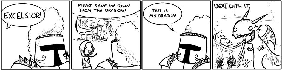Just a little project online to see if we can make comic style stuff given a single word as inspiration. So far we've had; Warm, Second, Eulogy, Fish and Excelsior.